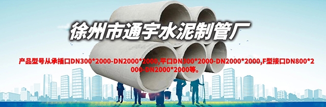 徐州市通宇水泥制管厂专业生产水泥管,,办公室地址位于徐州经济技术开发区大黄山镇湖庄村钢材市场院内,2007年04月16日在徐州市经济技术开发区注册成立,注册资本为100万元人民币,我们始终为客户提供好的产品和技术支持、健全的售后服务,本公司主要经营各种规格的雨水管、污水管、钢筋混凝土排管、F型顶管等。产品型号从承插口DN300*2000-DN2000*2000,平口DN300*2000-DN2000*2000,F型接口DN800*2000-DN2000*2000等。